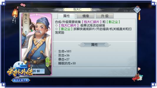 别看这位包大仁其貌不扬,但他家财万贯,不仅是礼部侍郎,还娶了十五房姨太太,就连佟掌柜都差点成为他的十六姨太。这其中,必有绝招!客官有机会从极寒试炼活动中获得包大仁碎片,让他和白眉、平谷一点红、吕轻侯、白展堂齐上阵,还有意想不到的惊喜!