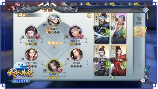 客官可以同时上阵6个侠影,每个侠影均有4个情缘,当上阵的侠影中有对应的情缘侠影,就将激活情缘属性。此外,上阵的侠影全部达到1级、3级等,还可获得阵法属性加成。