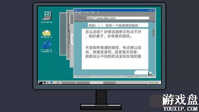 非常奇怪的游戏设定,相信各位刚接触这款游戏的时候也会感觉到很离奇,回家之后看到妻子的“尸体”...这种游戏如何过审?难道是一款惊悚恐怖向的游戏?经过一段时间的体验后发现,这非但不是一款恐怖游戏,还是一个让人感到温馨的游戏。妻子并不是真死,而是在装死给丈夫看,这位妻子有些聪明调皮,装死是因为男主生活重心全在工作上,对于家庭不那么重视,妻子通过各种各样的假死方式吓男主,男主想尽一切方法找寻线索,通关之后游戏界面会有可爱的妻子醒过来和欢迎回家的字幕,非常可爱温馨。