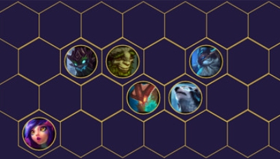 在四人口的时候可以用大树、艾翁、妮蔻、奥恩组成3森林德鲁伊,5、6人口时可以补上狗熊,锤石/泰坦凑齐2雷霆2守护神的羁绊。