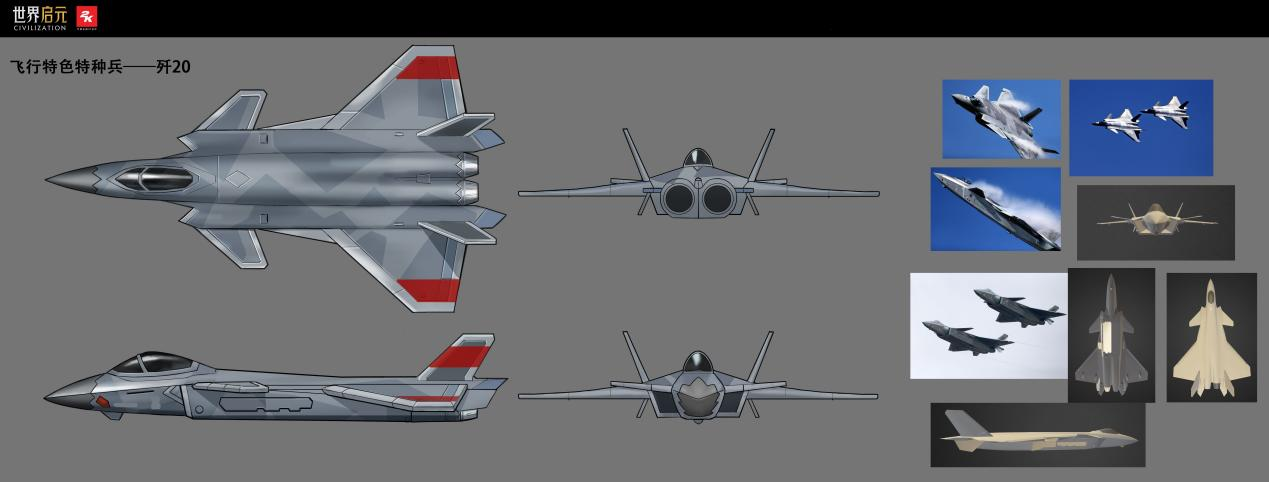 歼20的出现,又将会给《世界启元》的陆空一体作战带来新的变化。歼20具有非常强大的作战性能,在机动性、作战半径、隐身性能、信息化、超音速巡航、丰富的武器装备等多个均有体现。但是,游戏不等于完全真实。需要聚焦歼20适合在策略游戏玩法形态下展现的突出能力。所以,游戏研发团队通过跟航空工业的专业人员交流讨论,聚焦在游戏内展现歼20的隐形、超远程作战、信息化作战这三大能力。