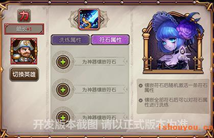 新增加的符石,可以镶嵌在神器上。从第二张图可以看出,石头分为3个等级,同时获取难度也不一样。第一张图又能看到3种不同名称的石头,不同的石头代表不同的属性。这就是爆料所说的使用符石强化神器属性,自定义搭配英雄属性!