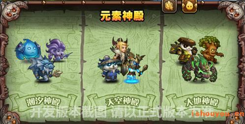上面介绍了那么多神器的作用,最终还是要回归到获取途径上来。从爆料给出的图中可以看出新增加的3个元素神殿应该会和时光之穴合并,同时挑战难度增加。从怪物的形态来看,与英雄分类一样,敏、智、力分开3种,每种神殿有3个难度,挑战之后分别得到3种符石。